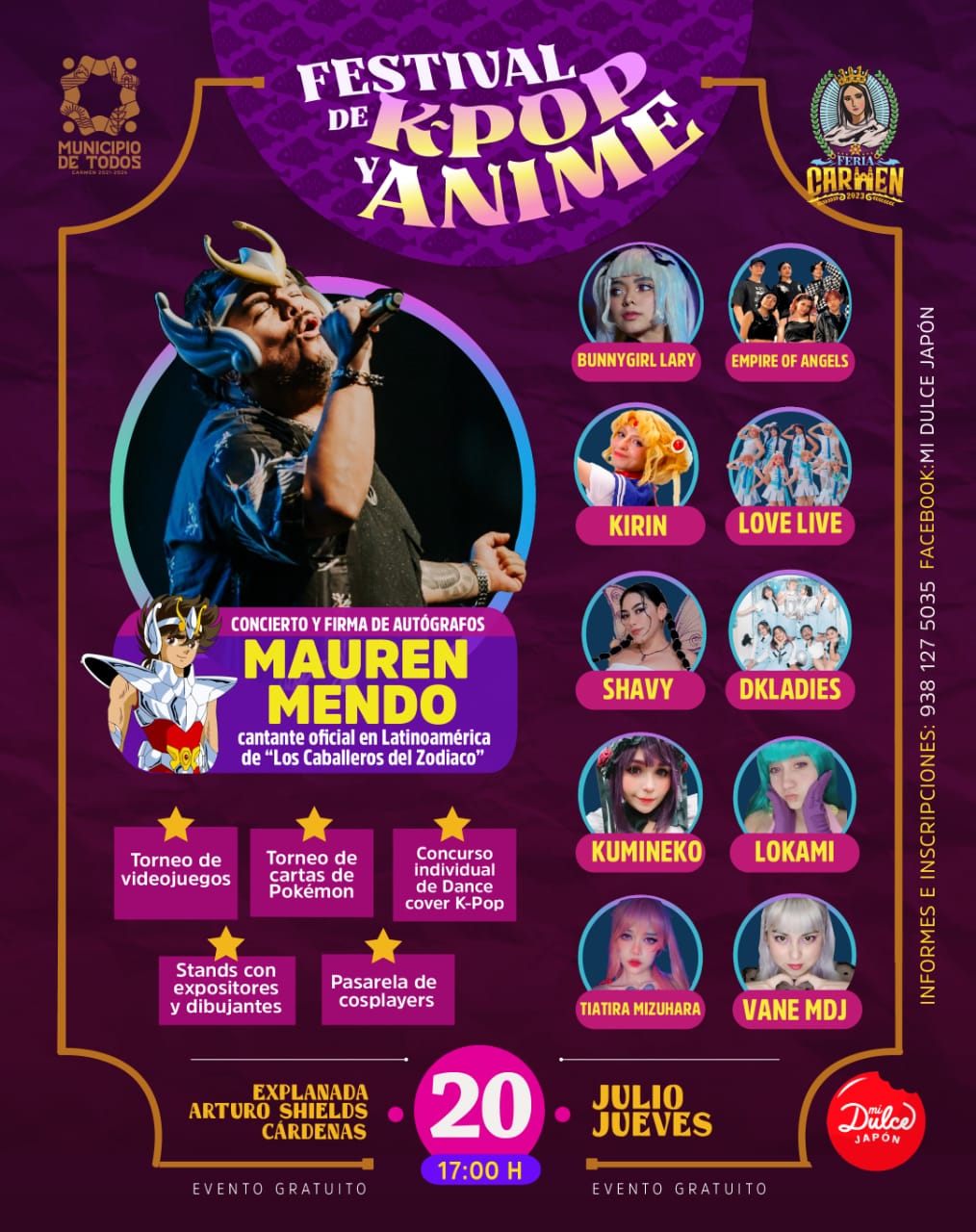 MAÑANA gran concierto de Mauren Mendo, cantante oficial de Los Caballeros del Zodiaco en el Festival K-pop y animé de la #FeriaCarmen 2023 Además habrá