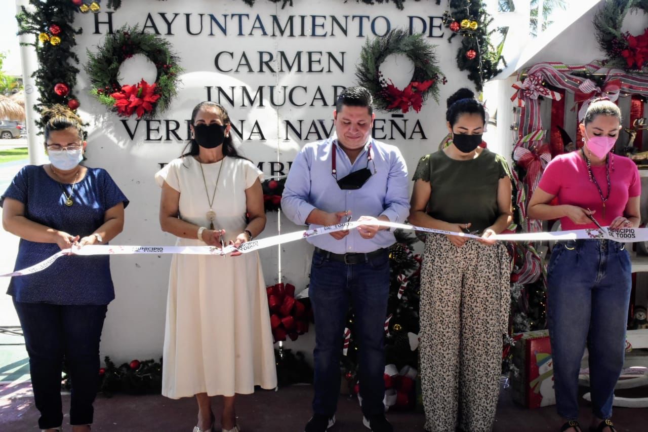 Con el objetivo de recaudar fondos para los programas en beneficio de las mujeres y a la par apoyar a los emprendedores y comerciantes locales, el Alcalde Pablo Gutiérrez Lazarus y la Directora del Instituto Municipal de la Mujer de Carmen (INMUCAR), Gladys Rivera López, inauguraron el Bazar Navideño que organizó esta dependencia y a cuya convocatoria se sumaron 62 microempresarios de diversos giros.