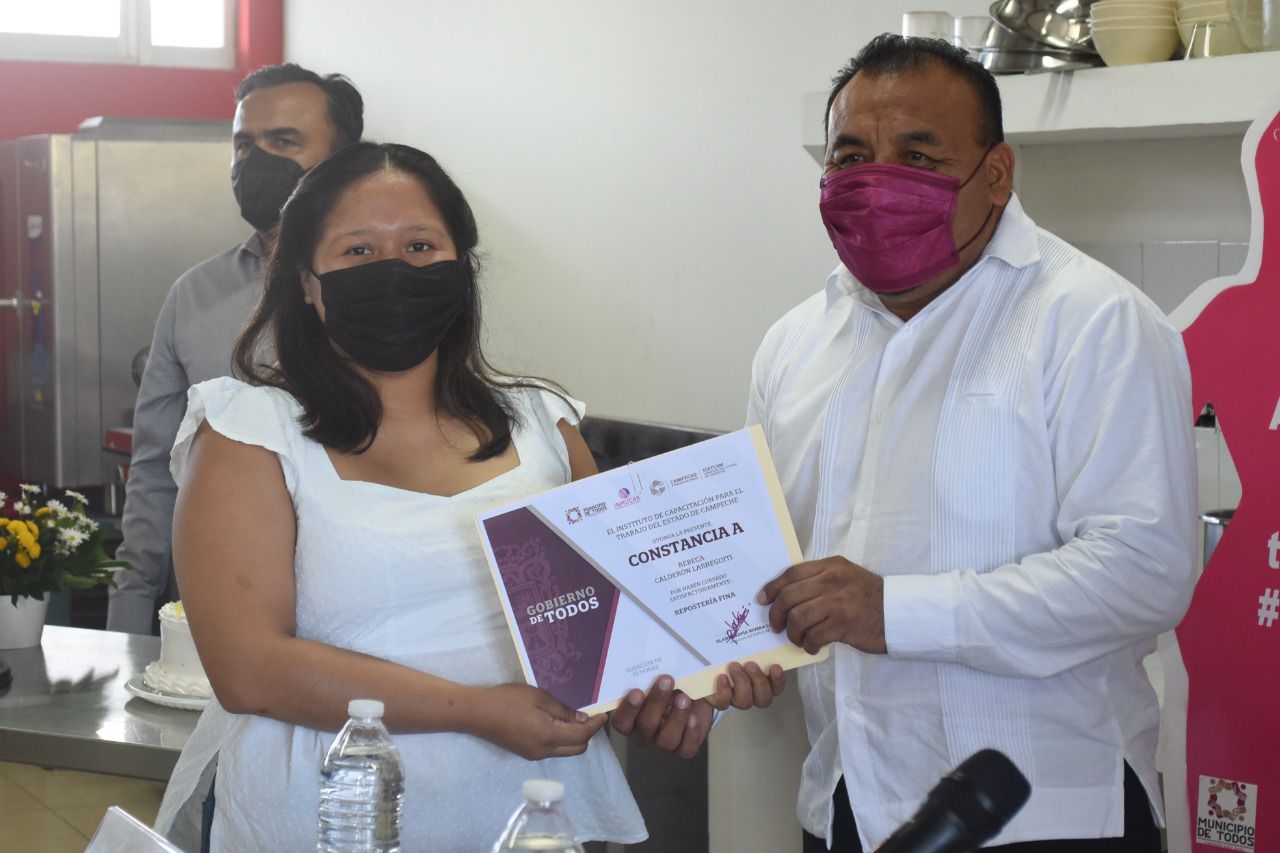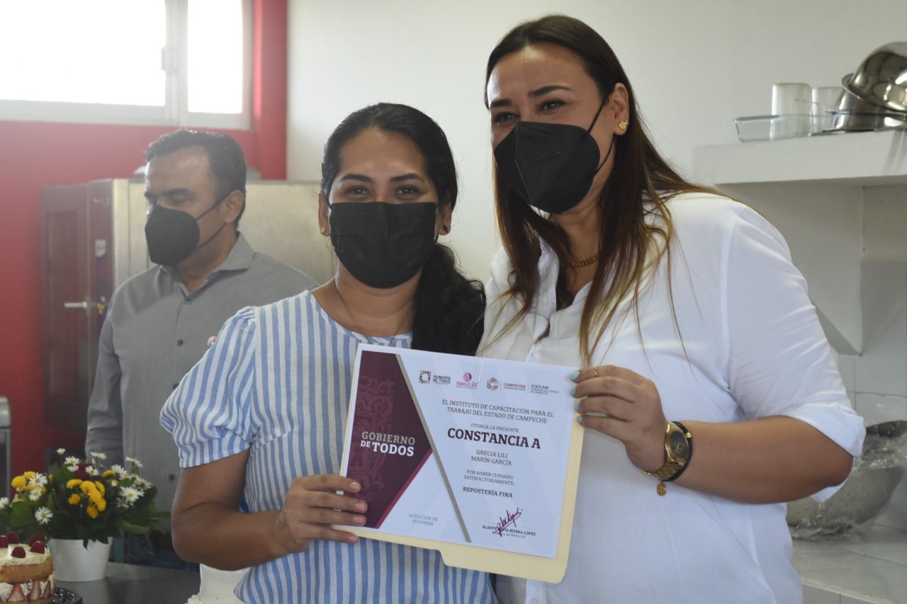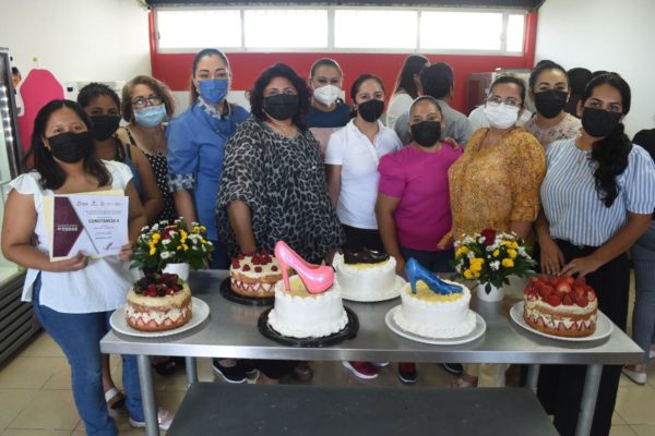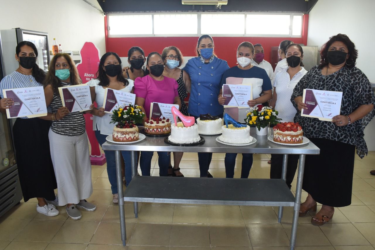 Brindando oportunidades de desarrollo, aprendizaje y emprendimiento para las mujeres carmelitas, conforme a lo instruido por el Alcalde Pablo Gutiérrez Lazarus, el Instituto Municipal de la Mujer de Carmen (Inmucar) clausuró su 1er curso de “Repostería fina”, de muchos más que se impartirán, evento en el que entregaron reconocimientos a nueve alumnas que concluyeron satisfactoriamente el taller.