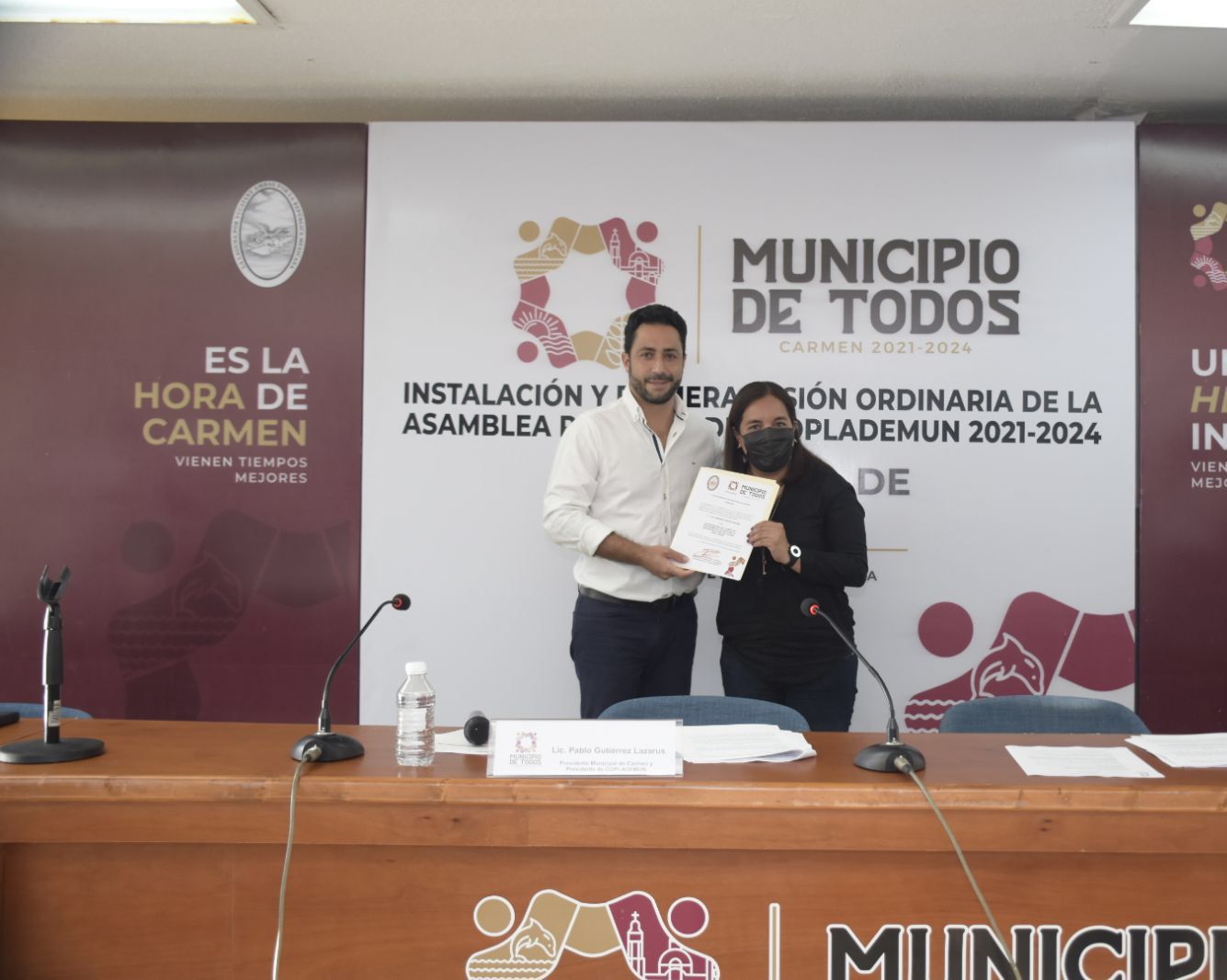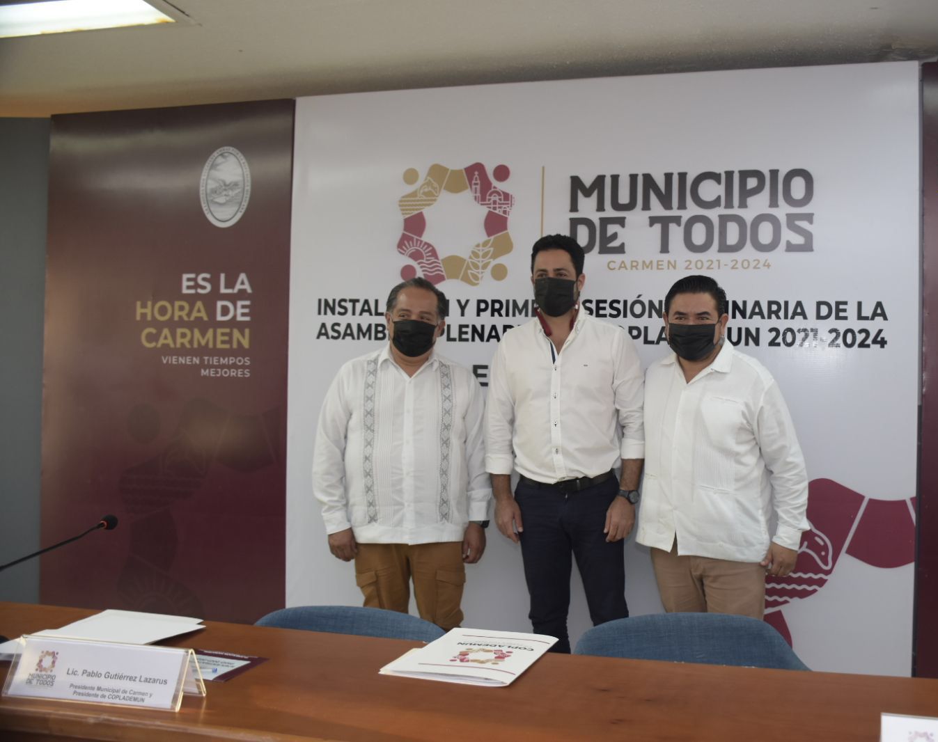 Cabe destacar que el presídium se conformó por el Alcalde Pablo Gutiérrez Lazarus; el Secretario del Ayuntamiento de Carmen, Luis César Augusto Marín Reyes; el Secretario de Planeación del Gobierno del Estado y Coordinador General del Comité de Planeación para el Desarrollo del Estado de Campeche (Copladecam), Miguel Ángel Gallardo López; la Coordinadora General del Coplademun, Fabiola Vanessa Villalobos; el Director de Desarrollo Social y Económico, Wilford Rodríguez Gil; y el Director del Instituto Municipal de Planeación (Implan) y Secretario Técnico del Coplademun, Astor Fabián Hill Ojeda.