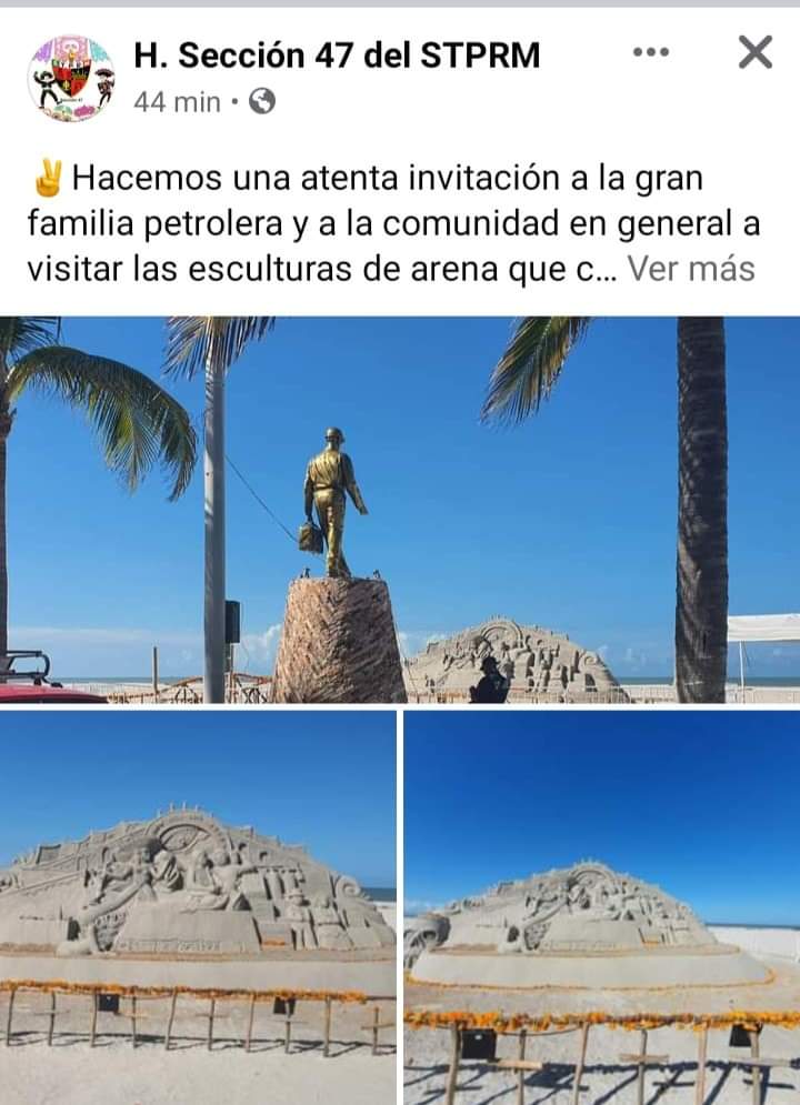 “Hacemos una atenta invitación a la gran familia petrolera y a la comunidad en general a visitar las esculturas de arena que con motivo del “día de muertos” que mandó elaborar el H. Ayuntamiento de Carmen, en Playa Norte.