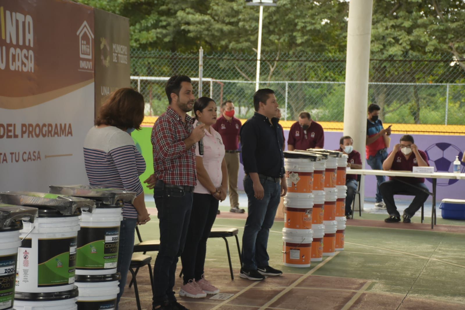 Destacó que, como gobierno, se tiene la obligación de apoyar hasta donde sea necesario, y, corresponsablemente, los ciudadanos colaborar para garantizar el bien común. “El ejemplo es de nuestro Presidente Andrés Manuel López Obrador, de apoyar a quienes más lo necesitan y que los beneficios lleguen de manera directa, sin intermediarios. Por esto, en este programa no hubo líderes de colonia apuntando en listas, fue una convocatoria abierta para que le toque a quienes en verdad lo necesitan, y confiamos en que estas 200 familias harán buen uso de esta pintura para mejorar su vivienda”.