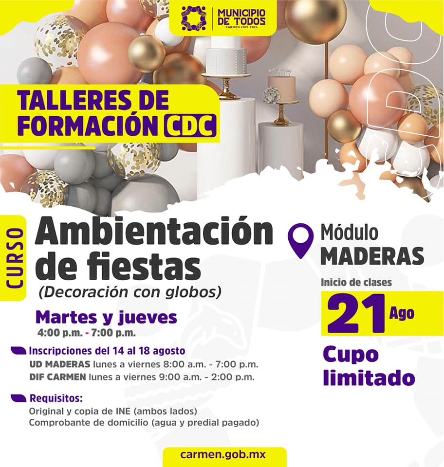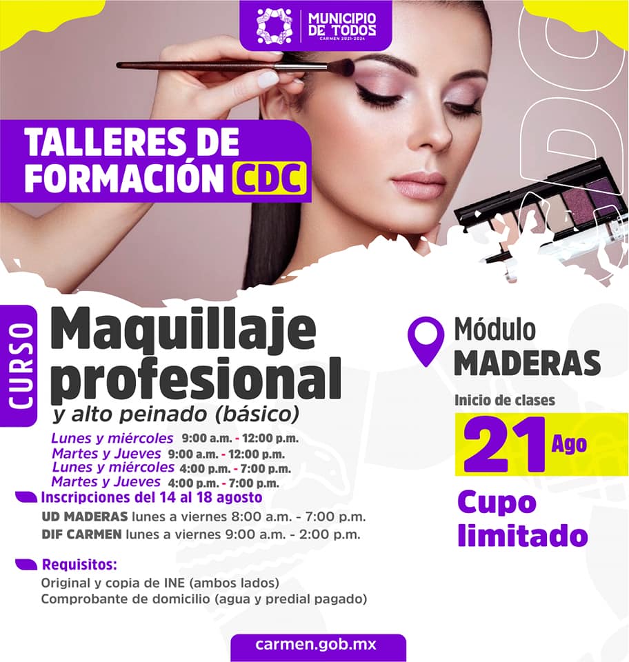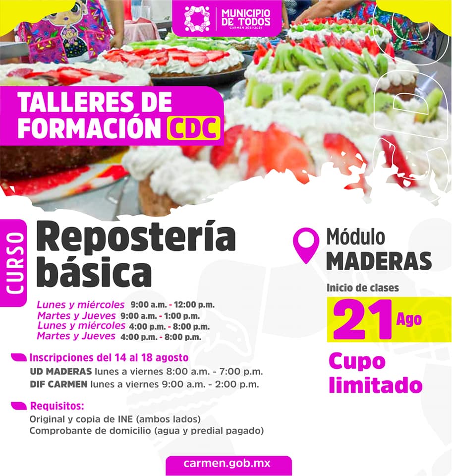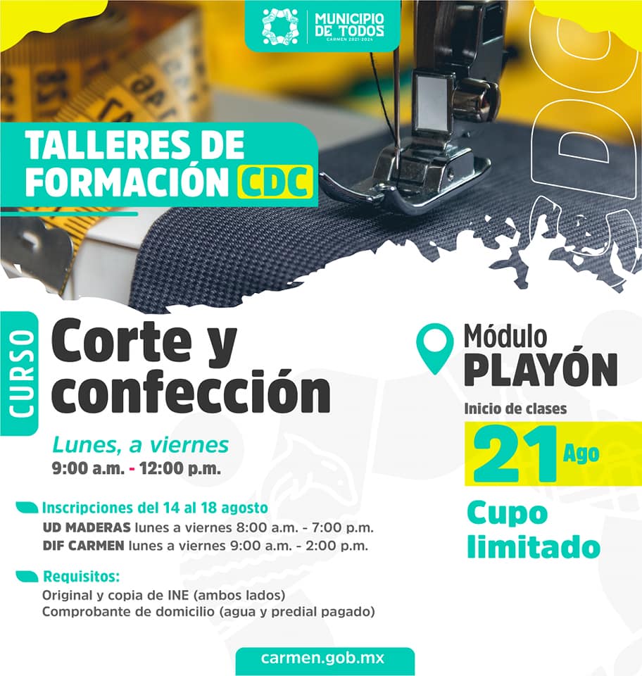 A partir de este lunes inscripciones abiertas a los + 40 Nuevos talleres que trae el DIF Carmen 2021 – 2024 a través de los Centros de Desarrollo Comunitarios