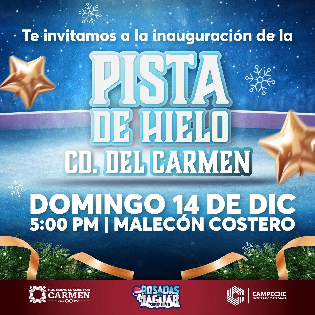 No te pierdas la Inauguración de la pista de hielo en Cd del Carmen este domingo 14 de diciembre a las 5:00 pm