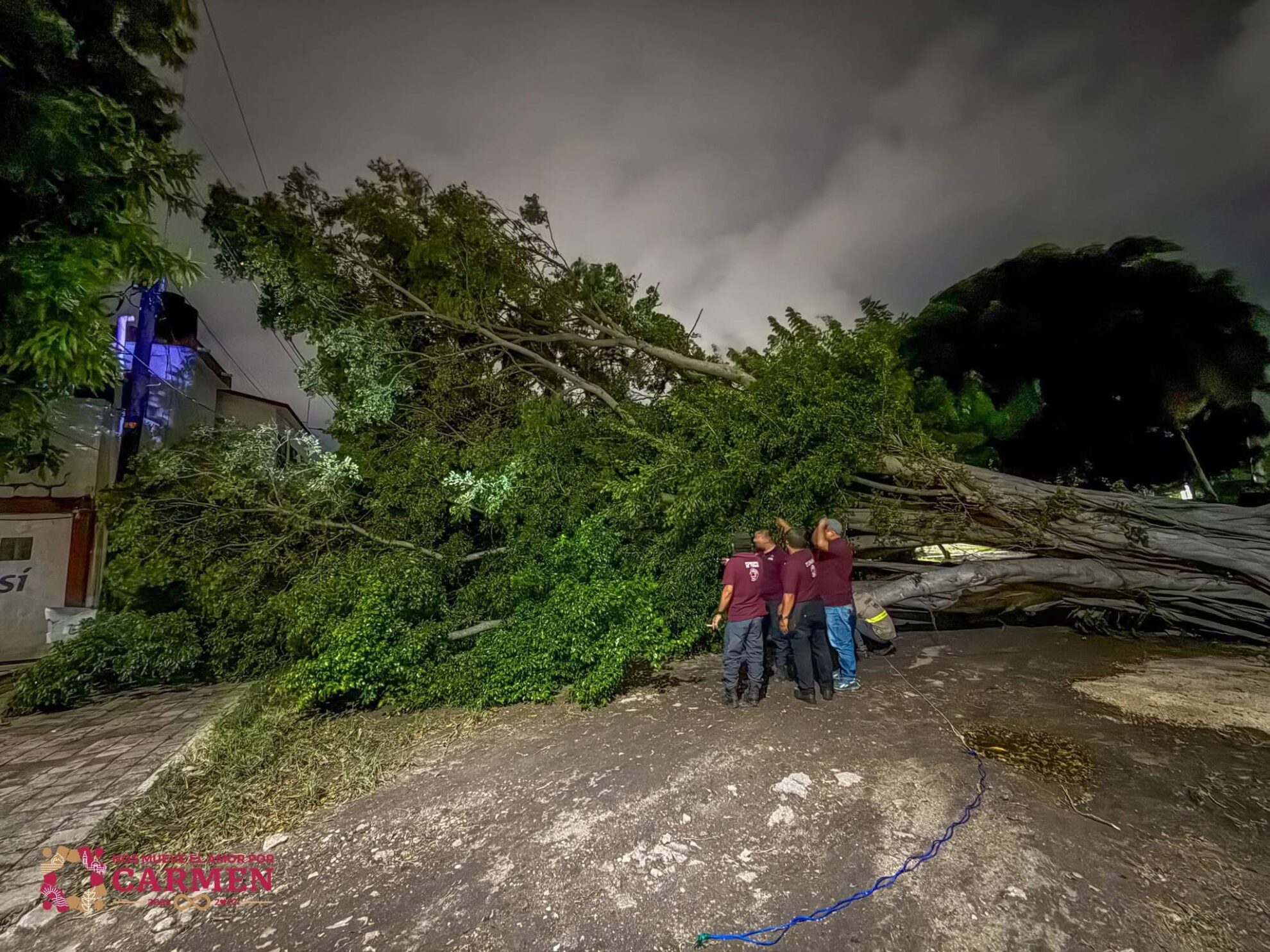 Debido a los fuertes vientos ocasionados por el #FrenteFrío, elementos de Protección Civil Carmen atendieden el reporte de la caída de un #árbol de gran tamaño en la calle Petirrojo, del Fraccionamiento Fovissste.