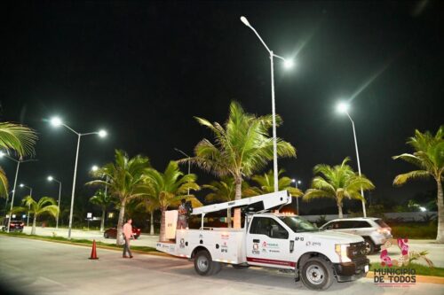 De día y de noche el Gobierno del Alcalde Pablo Gutierrez Lazarus trabaja para mejorar la infraestructura pública de nuestro municipio, por ello la Dirección de Servicios Públicos Generales reparó esta noche las luminarias del Malecón Costero, las cuales se ven afectadas cuando se presentan inundaciones en este sector debido al mal tiempo, pero son atendidas inmediatamente mientras que en algunas otras se corta la energía para evitar algún cortocircuito en esta zona.