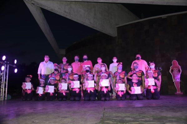 Finalmente, se entregaron reconocimientos a las empresas patrocinadoras que ayudaron al INMUCAR con diversos donativos, entre ellos, el representante de Subacuática Diavaz, S.A. de C.V., Lynn Enríquez Baez; de All In Service, S.A. de C.V., Hugo Juárez Lara y Óscar Rodríguez; de Sponyat-Jet, S.A. de C.V., Antonio Gordillo Ferrer; de Servicios, Operaciones y Suministros de la Isla, S.A. de C.V., Dolores Rueda; de JK Ingeniería, S.A. de C.V., Lidia Rodríguez Pérez; y de Loonkal Renovables S.A. de C.V., Agustín Pérez Mesegur. Quienes también recibieron reconocimientos fueron las integrantes de la Academia de Baile “Le Dance”.