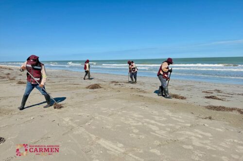Con trabajo intenso y dedicación, llevaron a cabo la limpieza de playa y retiro de sargazo, contribuyendo a la conservación del ecosistema costero y su buena imagen