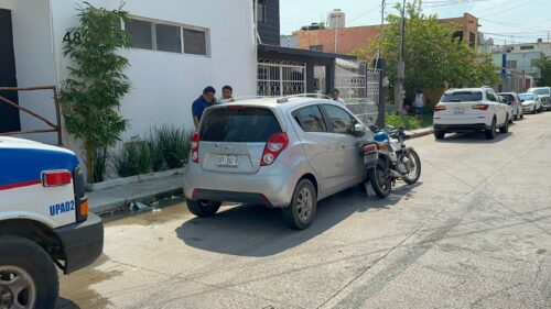 Aparatoso choque entre automóvil y motocicleta deja un lesionado en la colonia Revolución