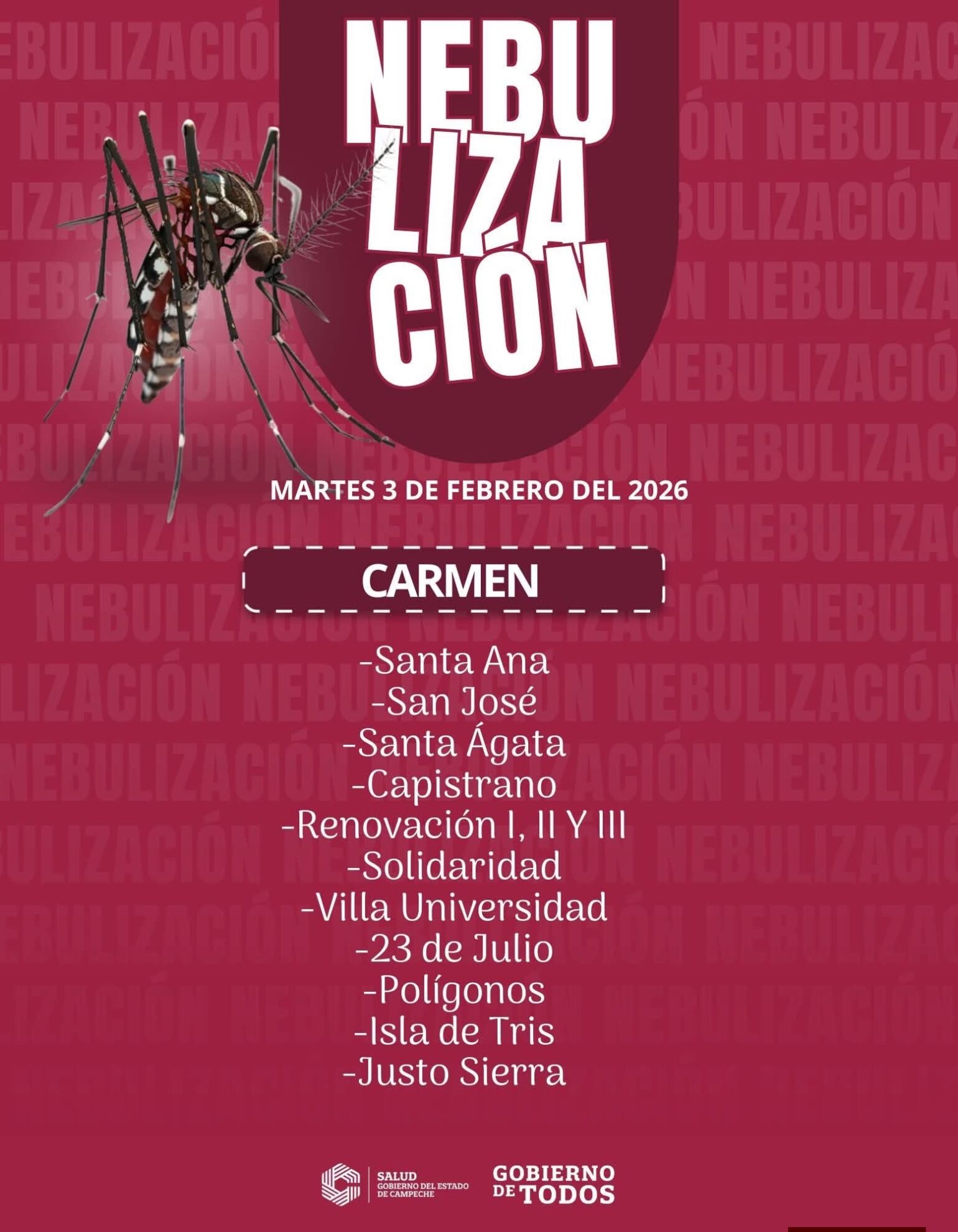 #HOY las acciones de #nebulización se realizarán en #Carmen.
