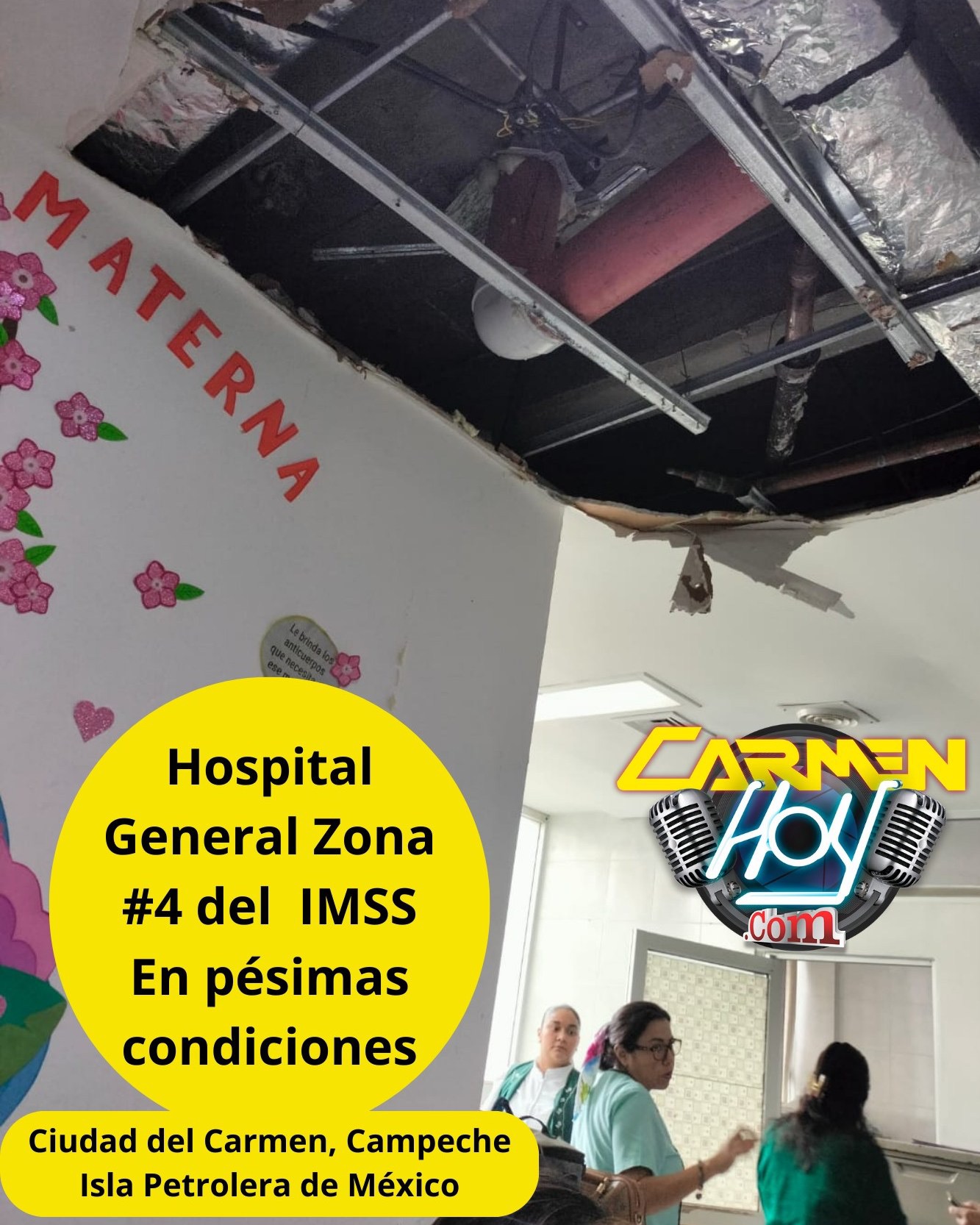 #Hospital General Zona #4 del IMSS (CENTRO), Instalaciones en mal estado ocasionado por la filtración de agua de lluvia en el area de atención de consultas medicas a derecho habiente del IMSS Ciudad del Carmen, Campeche.