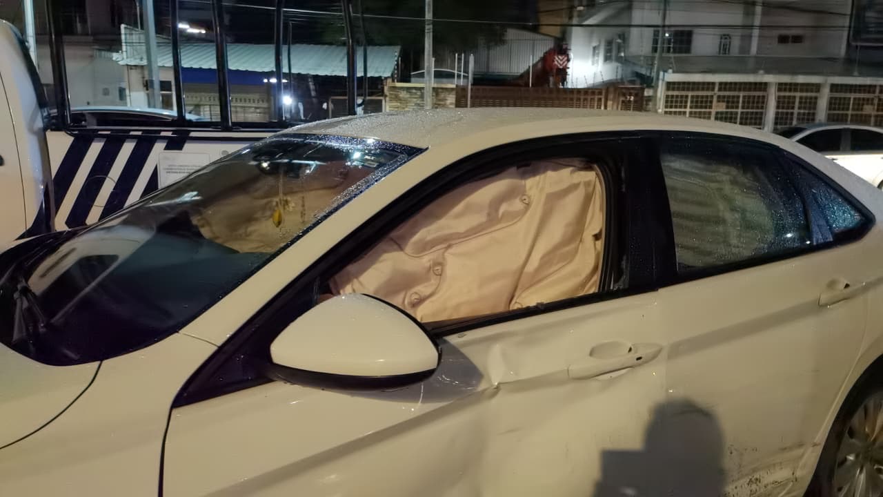 La maniobra imprudente provocó que la camioneta impactara el costado izquierdo del Jetta. El golpe fue de tal magnitud que activó las bolsas de aire del sedán, dejando daños valuados en varios miles de pesos.