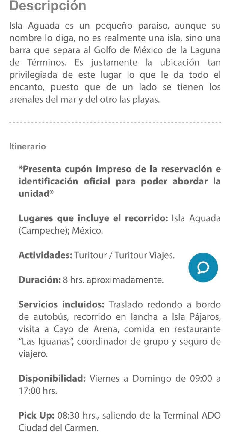 https://www.miescape.mx/miescape/diversion/turitour/ciudad-del-carmen/turitour-isla-aguada?SearchType=Activity&Iata=CME&RefPoint=Ciudad%20del%20Carmen&Currency=MXN&TipoViaje=sencillo&CheckIn=20220902&CheckOut=20220904&Rooms=1&Infants=0&Elder=0&Redirect=https: