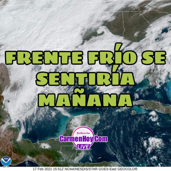 A partir del día jueves hasta el día viernes se pronostican cambios drásticos en las condiciones del tiempo sobre los estados de la península de Yucatán, causado por el arribo del Frente Frío Número 36 asociado a extensa masa de aire polar.