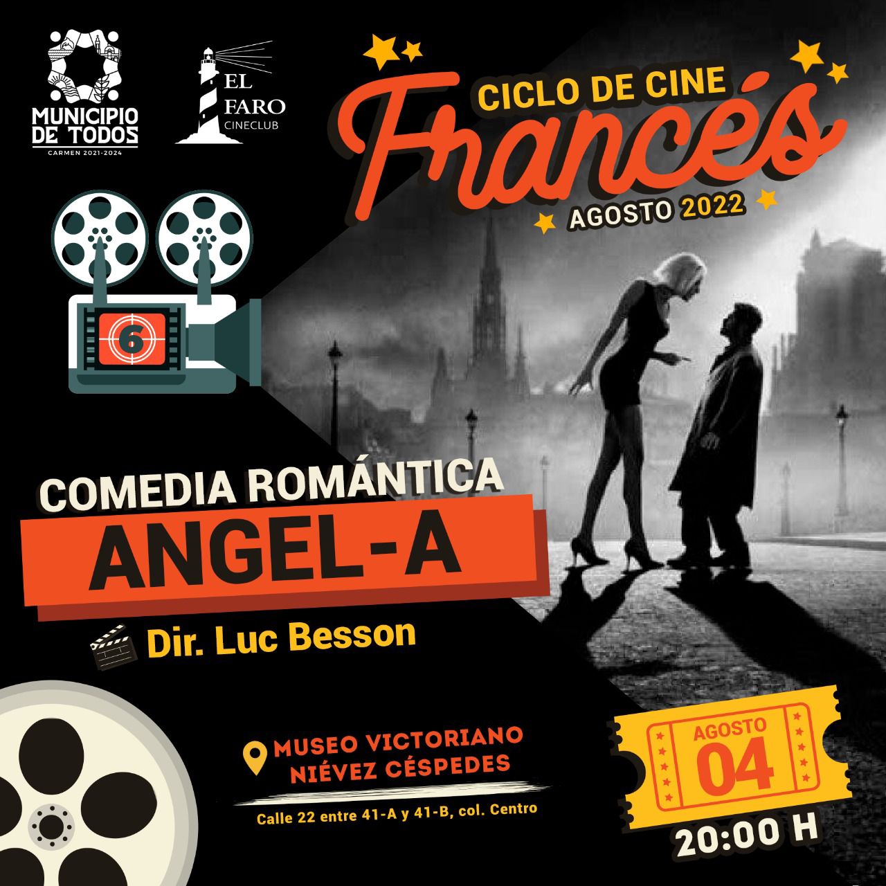 Mañana iniciamos con el Ciclo de Cine Francés y la proyección de la comedia romántica “Angel -A” del director Luc Besson, que retrata las desventuras de un hombre endeudado y su acompañante, mientras buscan el sentido de la vida; esta nueva jornada cinematografía se realizará semanalmente en el Museo Victoriano Niévez Céspedes.