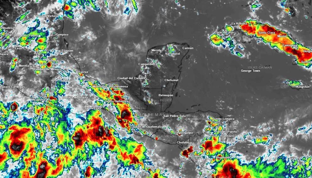 Los pronósticos indican que se presentarán tormentas moderadas dispersas (5 a 25 mm) en Yucatán y Campeche, y lluvias ligeras dispersas (menores a 5 mm) en Quintana Roo.