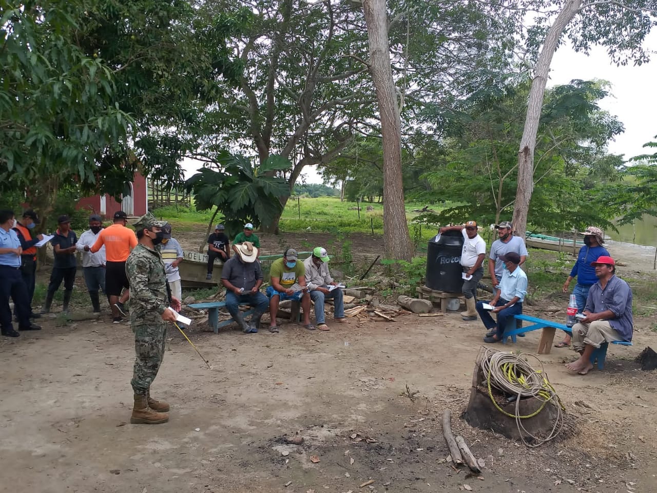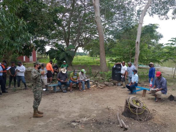 Ciudad del Carmen, Camp.- La Secretaría de Marina en el ejercicio de la Autoridad Marítima Nacional, a través de la Armada de México en funciones de Guardia Costera informa que ayer, personal de la Séptima Zona Naval, en coordinación con la Capitanía de Puerto de Isla del Carmen y la Estación Naval de Búsqueda, Rescate y Vigilancia Marítima (ENSAR) Carmen, impartieron pláticas informativas sobre Seguridad Marítima a los pescadores ribereños del Poblado San Eduardo del municipio de Palizada.