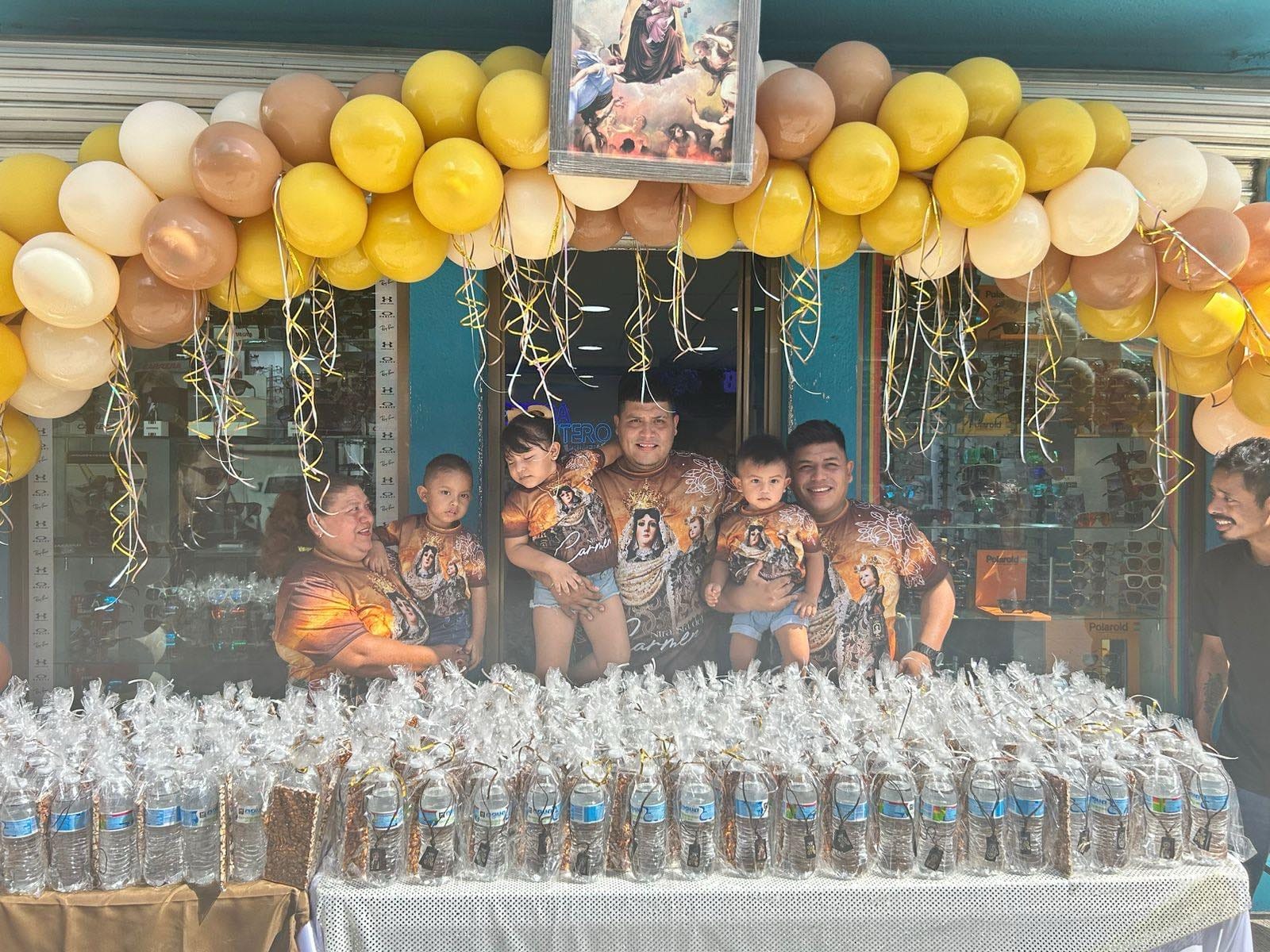 Optica quintero y su propietario Mauricio Quintero realizaron una noble labor al obsequiar botellas de agua con imágenes de la Virgen del Carmen durante el paseo de la Patrona de la Diócesis de Campeche por las calles, además al paso por su óptica la familia Quintero Chan realizó una ofrenda musical a la Virgen del Carmen al son de mariachis.