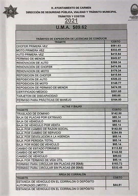 Pagos actualizados de licencias y otros tramites en la DSPVT en Carmen