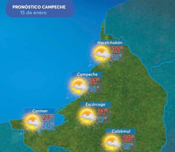 Campeche: Cielo medio nublado, con *probabilidad de chubascos nocturnos en el sur del estado*.
