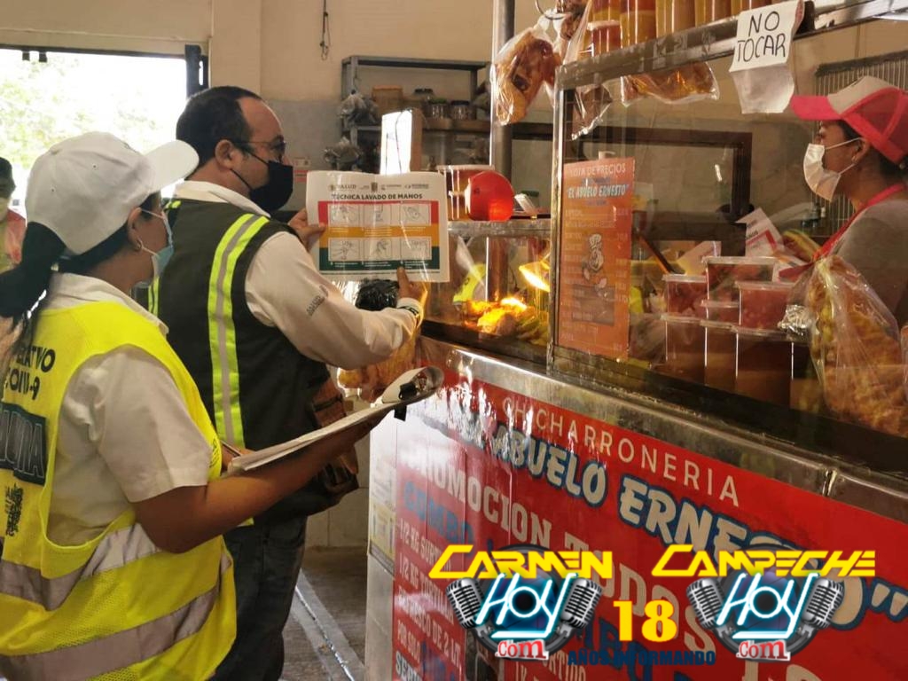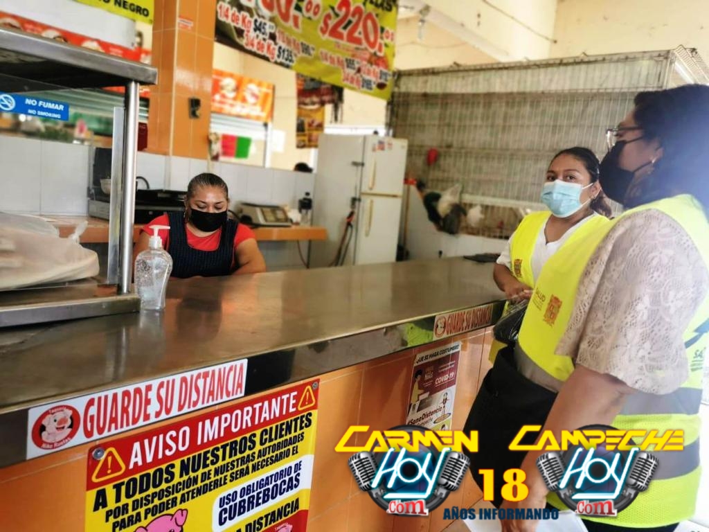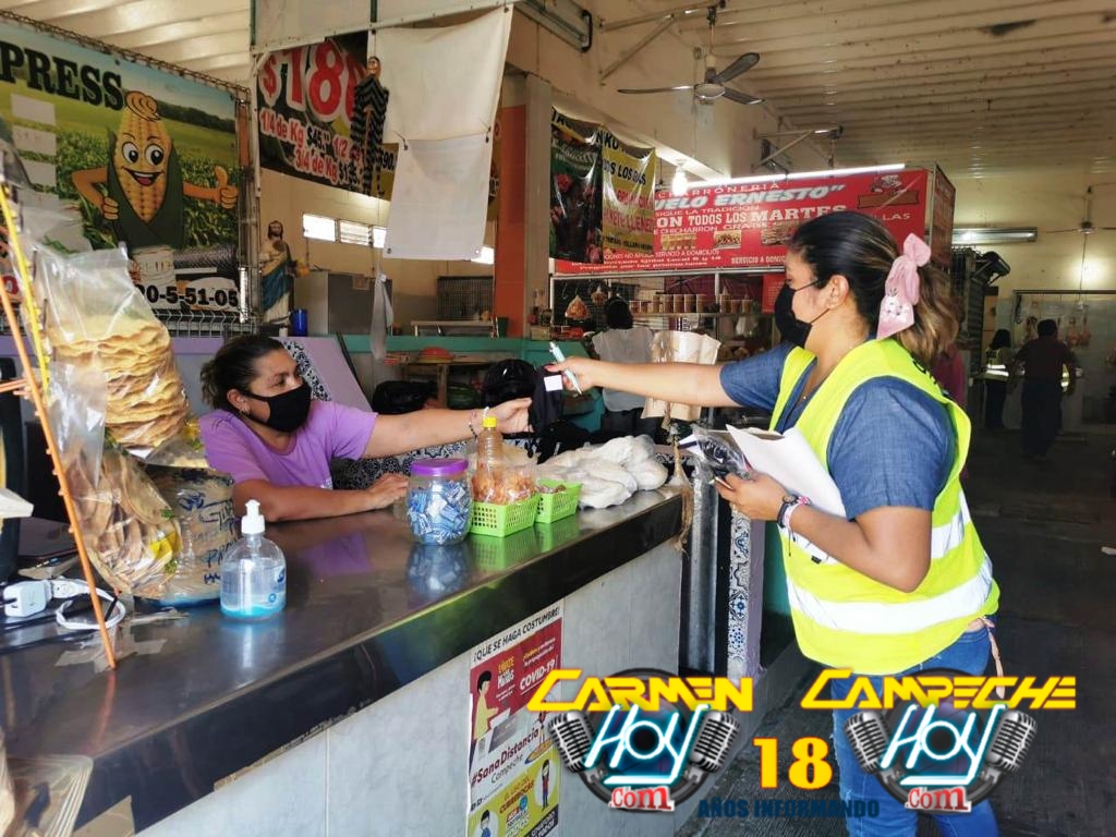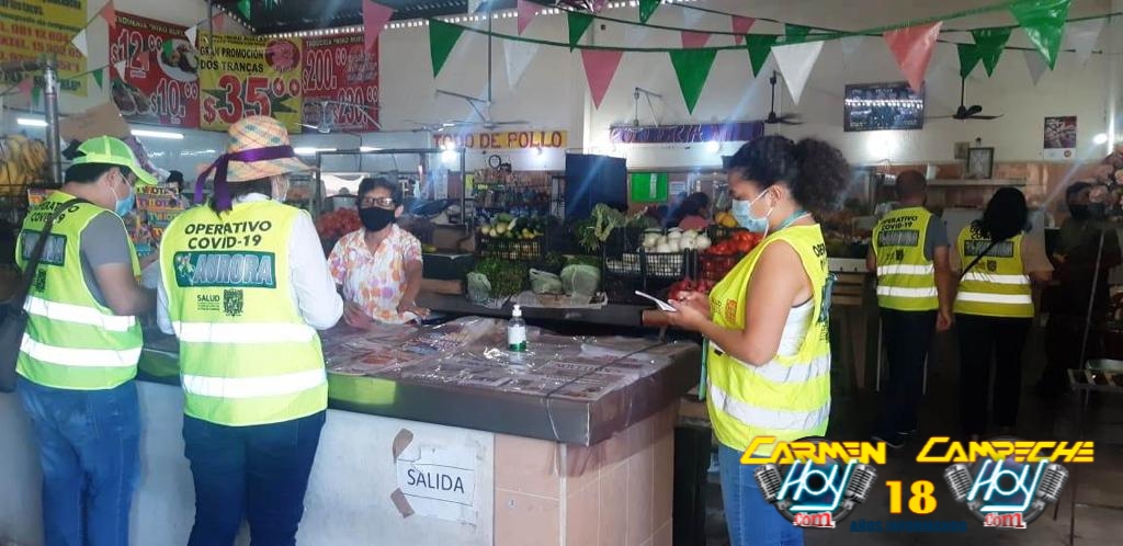 Este martes 13 de abril la brigada de salud recorrió los mercados tradicionales de San Román y Ejidal, para verificar el cumplimiento de medidas sanitarias en los establecimientos como la colocación de los filtros sanitarios, aplicación de gel, tapete, promocionales y el aforo permitido.