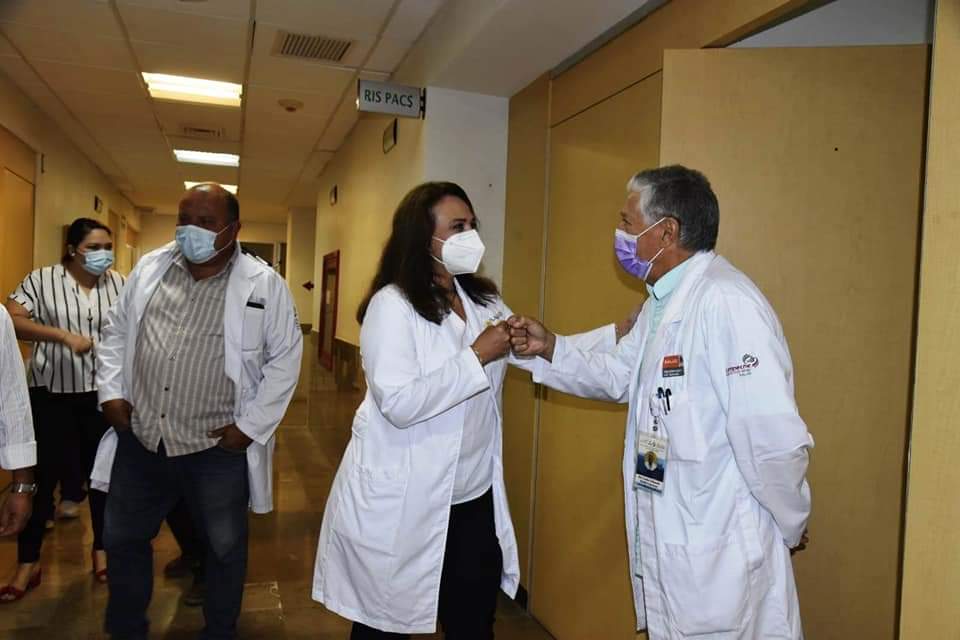 Durante el recorrido, en el que fue conducida por el director del hospital, Eduardo R. de la Gala Guerrero, la Dra. Montejo León platicó con el personal de salud en general, de quienes escuchó sus inquietudes y necesidades en su labor diaria, además de que extendió justo reconocimiento al trabajo que han desempeñado durante estos largos meses de la pandemia.