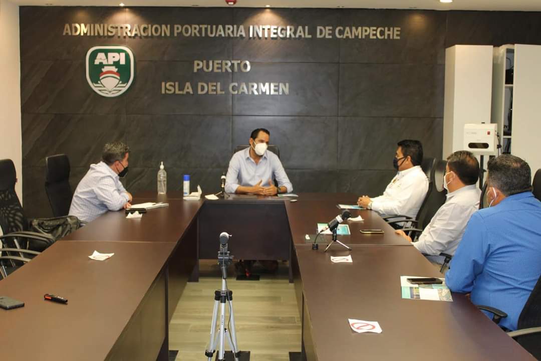 En gira de trabajo por la cabecera municipal de Carmen, el director general de la Administración Portuaria Integral de Campeche (APICAM) Carlos Eduardo Ortiz Piñera, acompañado por el gerente en la isla, Gonzalo Hernández Pérez, se reunió con representantes del sector privado, quienes están interesados en invertir y operar en la dársena cuatro del puerto Isla del Carmen.