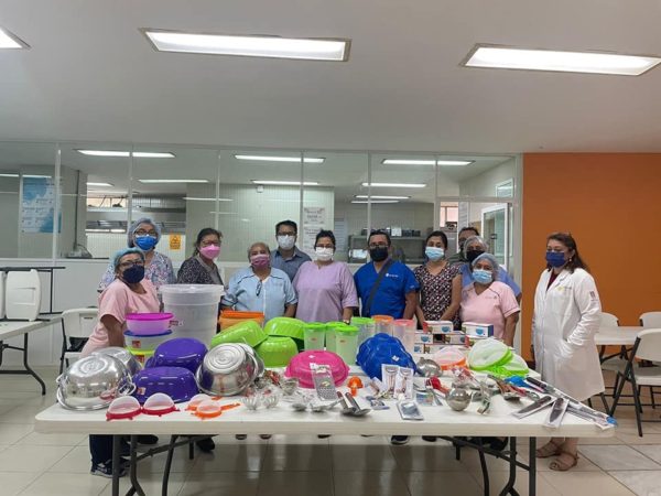 La regidora del Ayuntamiento de Carmen, Silvia Cámara viendo tal necesidad, dono un lote de diversos utensilios de cocina, los cuales servirán para optimizar la preparación de los alimentos que dan a las personas que están hospitalizadas y también a los médicos y enfermeras residentes.