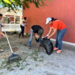 La joven Carmelita Tania Moreno Bulnes junto al equipo de la brigada naranja de Movimiento Ciudadano en Carmen realizaron labores de limpieza y chapeo en la Escuela Primaria Francisco de la Cavada Vera, esto con el fin de que los menores que se encuentran en esta institución educativa cuenten con espacios dignos para su educación.