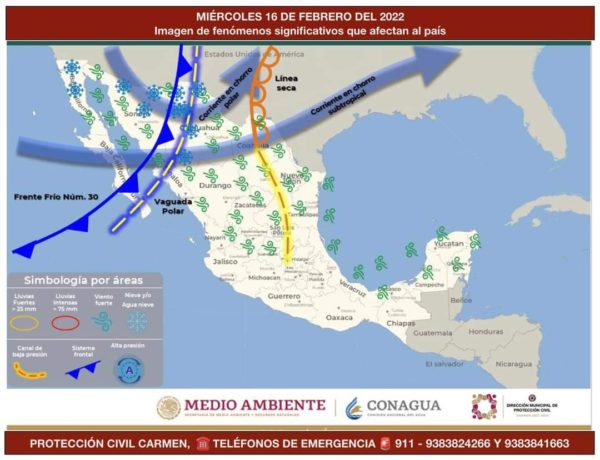 El frente frio No. 30 recorre el norte del país, por el momento sin efectos en nuestra entidad se mantiene en vigilancia.