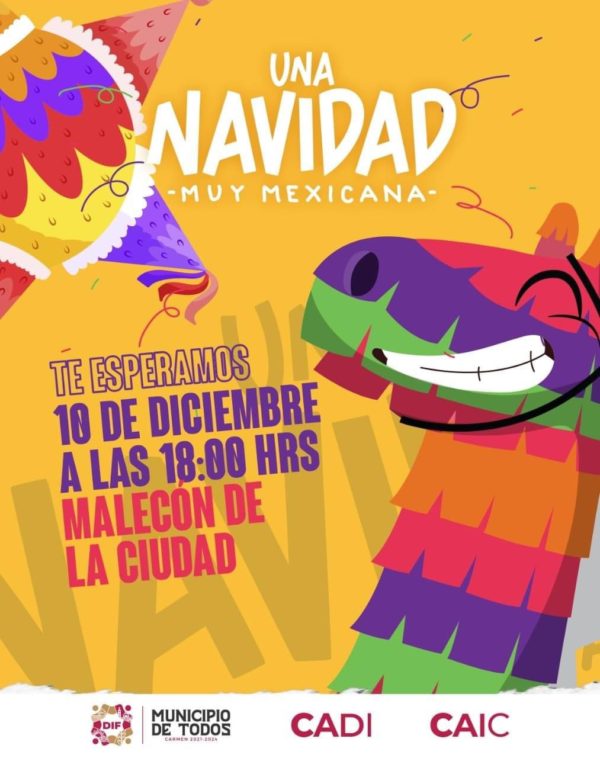 El Sistema Municipal para el Desarrollo Integral de las Familias (DIF) Carmen, a través de los Centros de Atención Infantil Comunitarios (CAIC) y el Centro Asistencial de Desarrollo Infantil (CADI), te invita a asistir a la “Navidad muy Mexicana” mañana viernes 10 de diciembre en el Malecón de la Ciudad a las 6:00 P.M., habrá festejo, comida, y muchas sorpresas más, así que ven con tu familia y disfruta con nosotros.