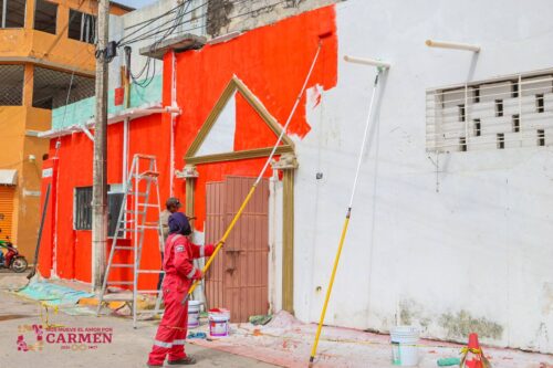 La Dirección de Vivienda Carmen llevó a cabo trabajos de embellecimiento en las fachadas de la calle 20, en la colonia Centro, como parte de las acciones para mejorar la imagen urbana del municipio.