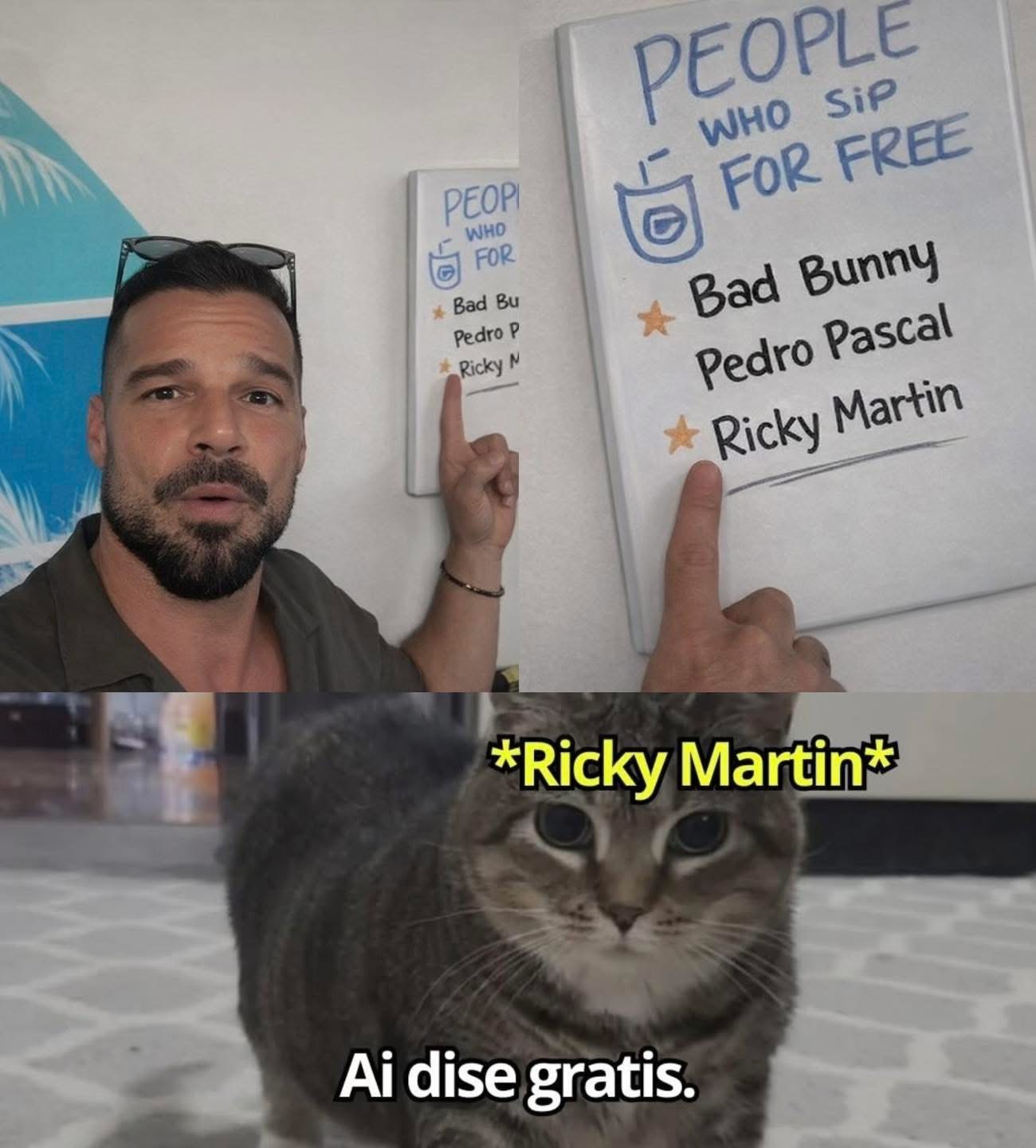 En el lugar había un pizarrón con una lista de celebridades que, según decía, podían recibir un frappé gratis. Entre nombres como Bad Bunny, Pedro Pascal, Lady Gaga y Adam Sandler… también estaba el suyo.