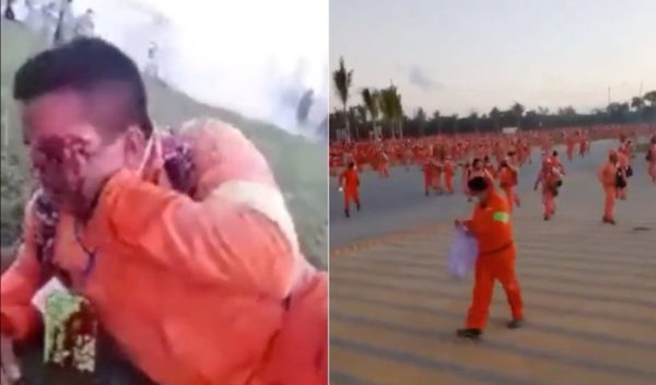 Respecto a los lesionados, uno de los videos hasta ahora compartidos muestra a un obrero que resultó gravemente lesionado en su ojo izquierdo: con sus dos manos sostenía la gasa sangrante, mientras exclamaba por auxilio.