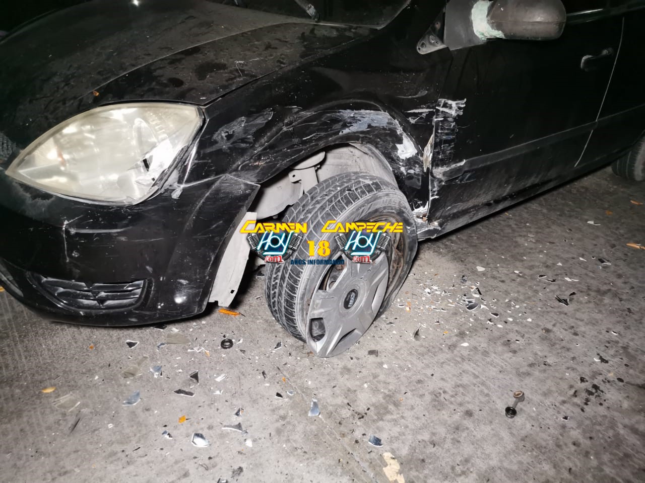 Invadió el carril contrario de circulación y se impactó por alcance y por segunda ocasión contra un vehículo particular Ford fiesta, color negro con matrícula de circulación DKB-67-31 del estado de Campeche el cual circulaba en preferencia y 3 de sus ocupantes resultaron lesionados.