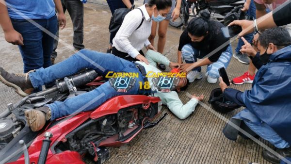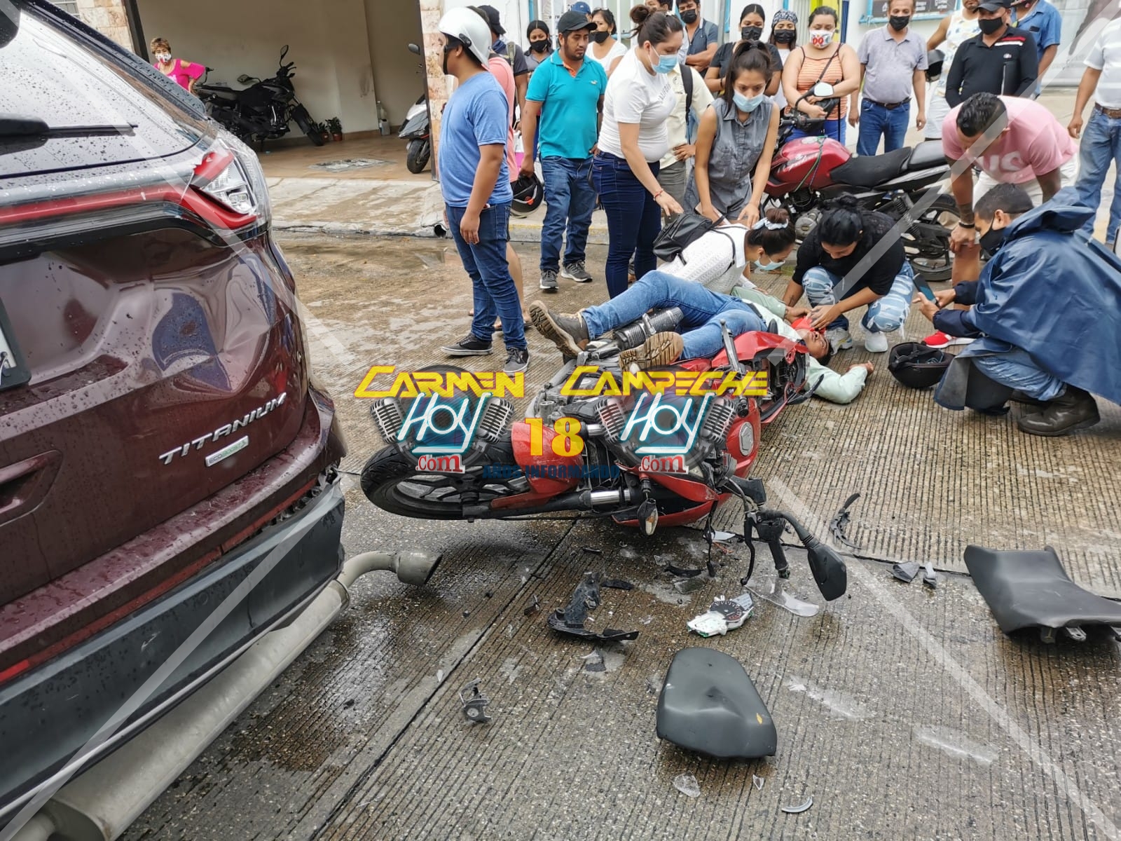 Se impactó de lleno contra la parte trasera de la camioneta, haciendo que el motociclista impactará su rostro contra la cajuela y terminara encima de su motocicleta lesionado y bañado en sangre, ciudadanos al percatarse del aparatoso accidente se acercaron para brindarle los primeros auxilios, y realizaron varias llamadas para solicitar la presencia de una ambulancia.