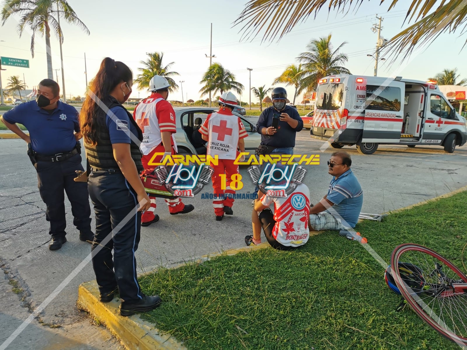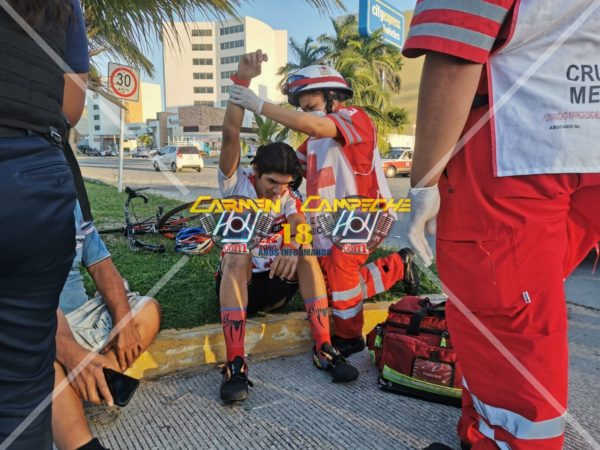 Un joven ciclista que realizaba entrenamiento en Playa Norte, fue accidentado por el conductor de una camioneta Ford al atravesarse al paso del ciclista quién tras intentar esquivarlo se fue contra el camellón central de la avenida paseo del mar.