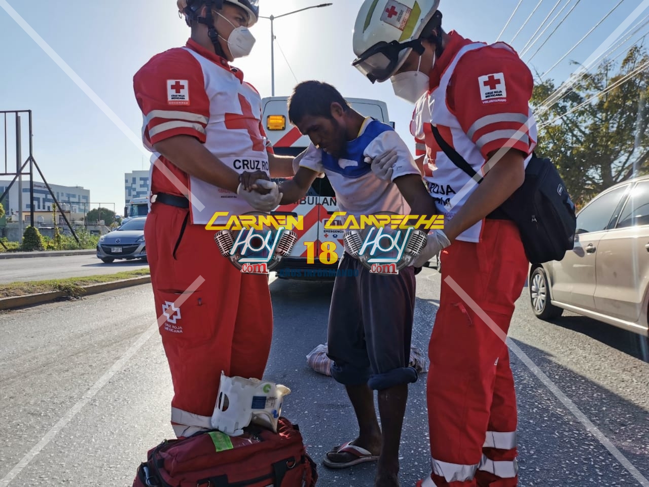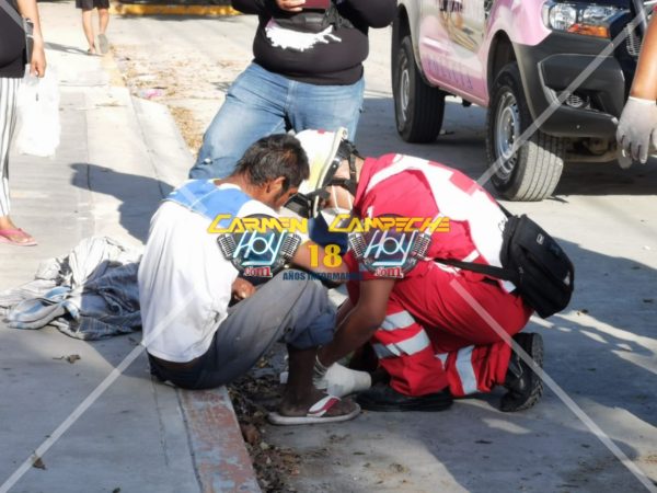 Mientras socorristas de la Cruz Roja Mexicana, brindaban los primeros auxilios y curaban las heridas sangrantes que el indigente tenía en los codos, aplicándole un vendaje ya que las lesiones no eran de gravedad por lo que no amerito ser trasladado a algún nosocomio de la isla.