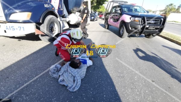 Desafortunadamente al hacerlo sin precaución, según testigos indicaron que fue un tráiler que lo golpeará y enviara al pavimento con lesiones en los brazos, agentes de la Policía Estatal Preventiva, abanderaron la zona y solicitaron de una ambulancia.