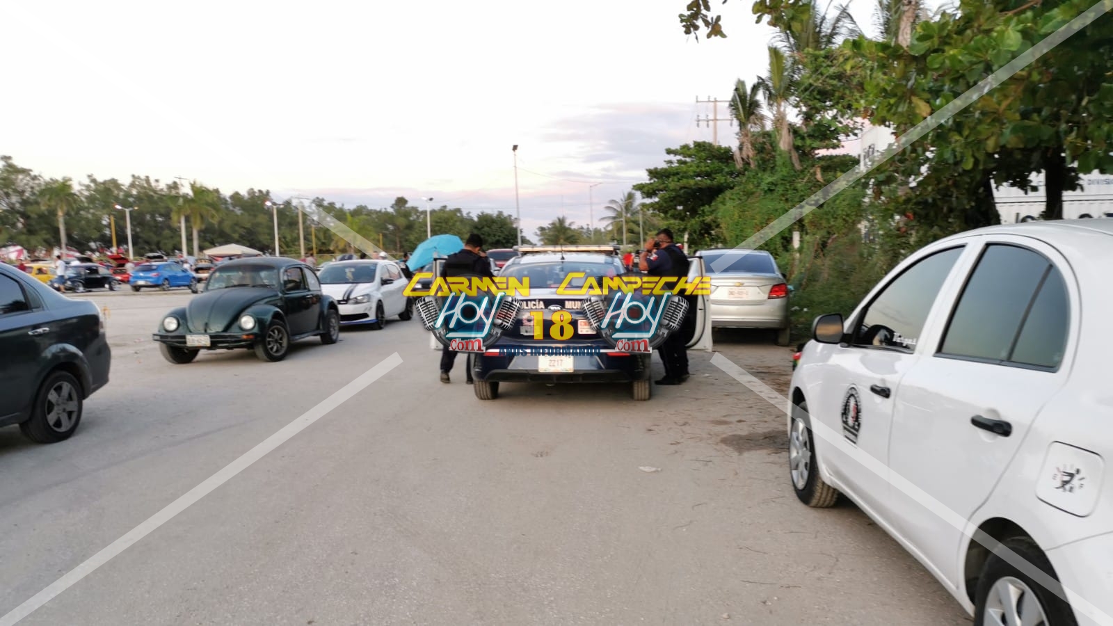 Lo descubre con la amante en un evento de autos en Playa Norte y hace un alboroto, el susodicho escapó en su automóvil con la supuesta intrusa.