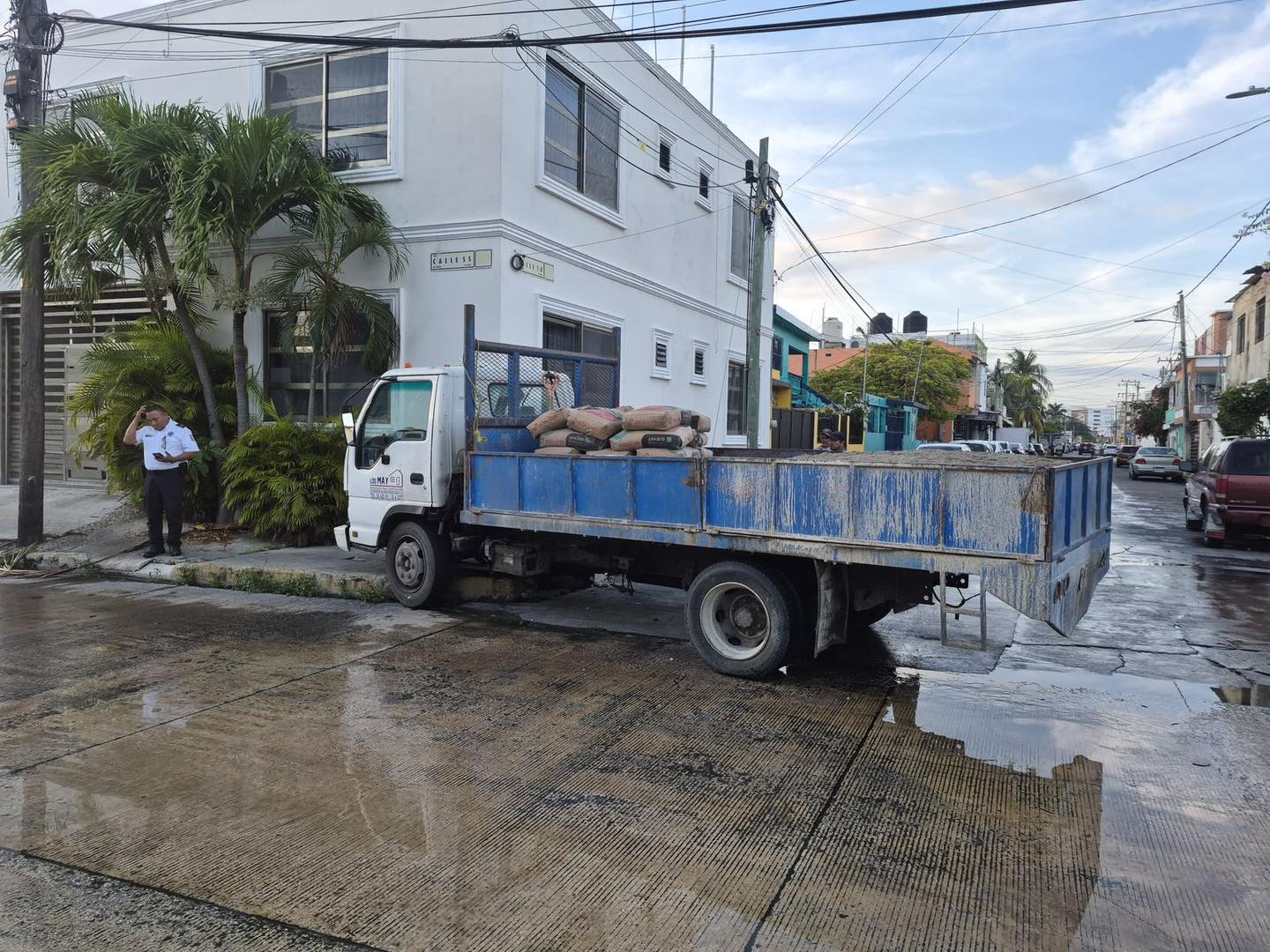 El percance ocurrió sobre la avenida 55, esquina con calle 58, a una cuadra del mercado Morelos, donde el conductor de un camión marca Isuzu, color blanco, con placas de circulación CS-4874-A del estado de Campeche, perteneciente a la empresa de materiales “Los May”, circulaba con una pesada carga consistente en sacos de cemento y arena.