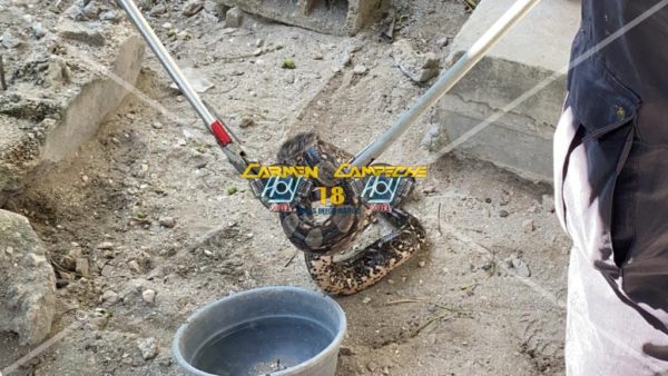 La imponente especie fue identificada como una Boa Constrictor que media un aproximado de un metro y medio de largo, por lo que los elementos de Protección Civil fueron muy cuidadosos a la hora de asegurarla, evitando así algún accidente o que la especie huyera a toda velocidad.