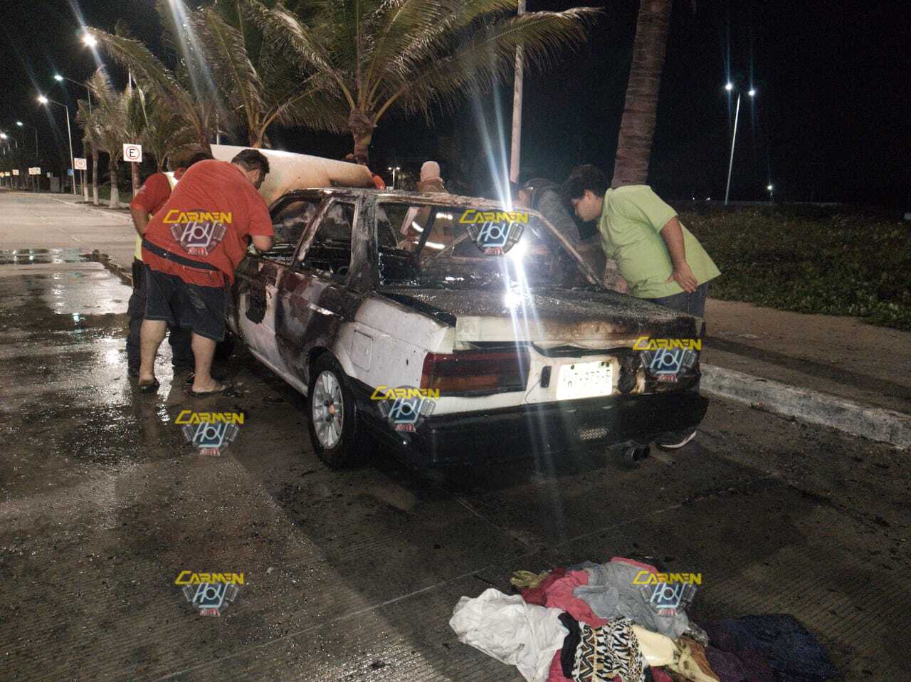 Fue en pleno malecón costero de playa Norte que un vehículo término reducido a cenizas luego de que un cortocircuito en el área del motor hiciera que este ardiera en llamas.