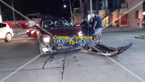 Los hechos se registraron alrededor de las 23:30 horas cuando el conductor de una Camioneta Hyundai Creta, color rojo, con matrículas DKC-35-07 de Campeche, circulaba a exceso de velocidad sobre la calle 33-A de la colonia Fátima.
