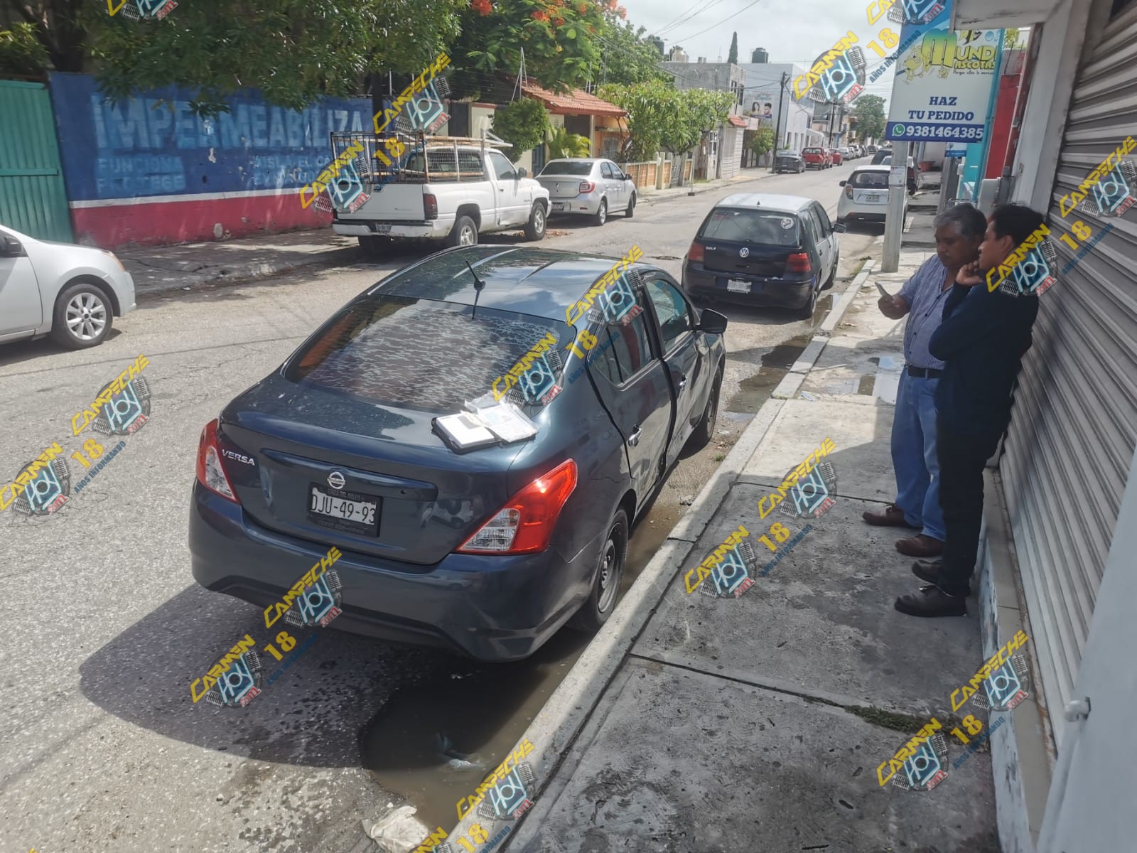 El accidente de tránsito ocurrió cerca de las 11:05 horas sobre la 56 esquina con calle 35-A de la colonia Fátima, lugar en donde el conductor de un automóvil Nissan versa, color azul con matrícula de circulación DJU-49-93 con registro en el Estado de Campeche circulaba a exceso de velocidad sobre la calle 35-A, pero llegando al cruce de la avenida 56, Presuntamente se pasó el semáforo en rojo, lo anterior ocasionó que el conductor de un vehículo Nissan Sentra, color rojo con matrícula de circulación DKC-19-43 del estado de campeche lo colisionara en el costado lateral derecho, causando esto daños de mayor Cuantía para ambas unidades, afortunadamente no se registraron personas lesionadas por lo que todo quedó en daños materiales, llegando los involucrados a un favorable acuerdo mediante las aseguradoras.