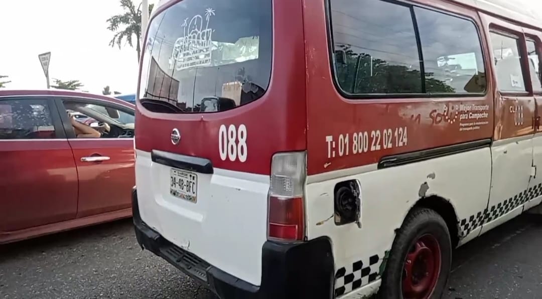 Chofer de combi impacta por alcance una camioneta en la carretera isla de Tris por avenida Puerto Progreso de la colonia Plutarco Elías Calles.
