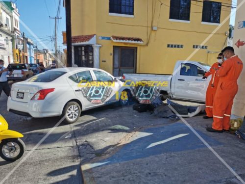 El percance ocurrió alrededor de las 8:50 horas, sobre la calle 30 por 25 de la colonia guanal, lugar donde trabajadores de la compañía petrolera “Naviera Integral”, se desplazaban a bordo de una Nissan NP300, color blanco con matrícula de circulación CR-67-033 con registro en el Estado de Campeche.