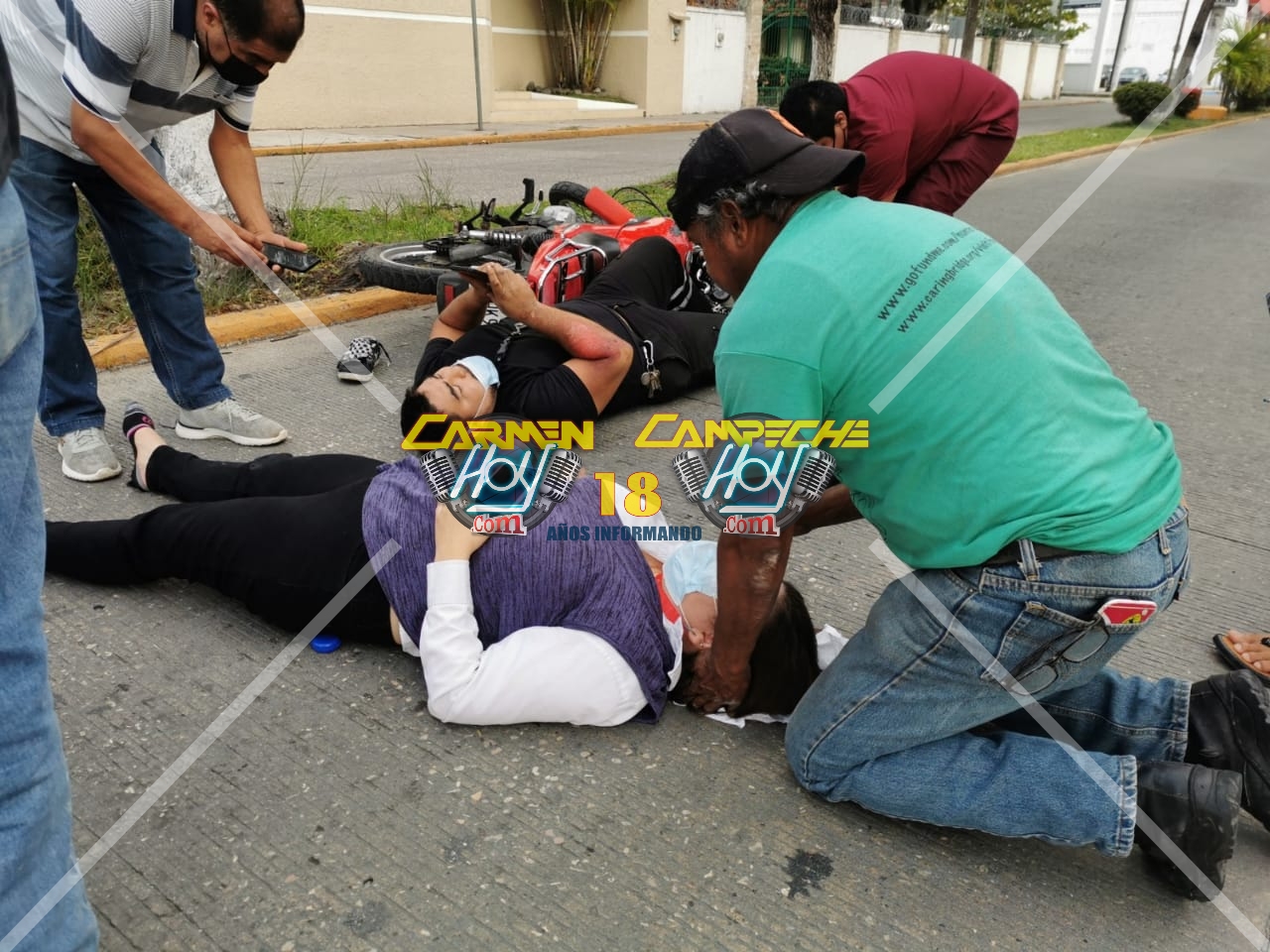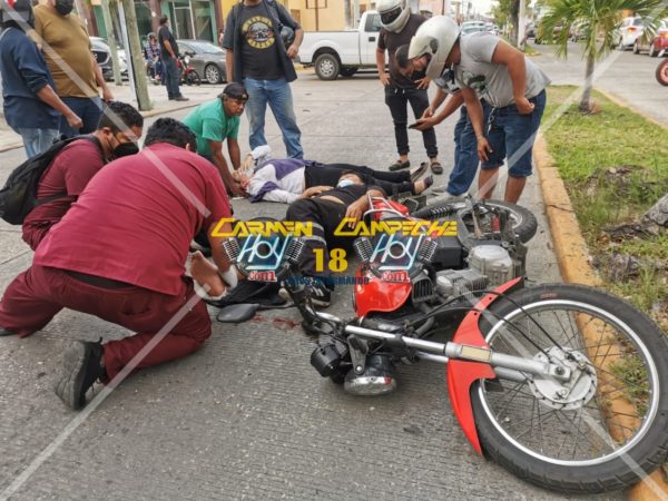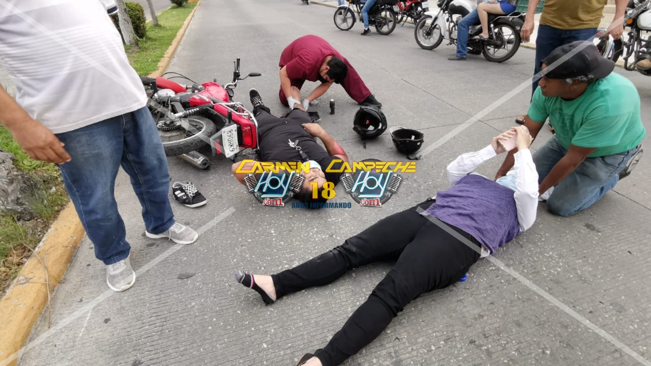 Una pareja de motociclistas fue llevada a una clínica particular con fracturas y lesiones en varias partes del cuerpo luego de ser accidentados por el conductor de un automóvil en calles de la colonia burócratas.