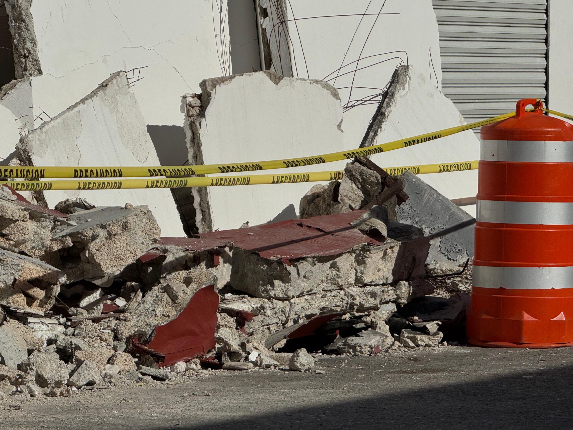 El incidente ocurrió alrededor de la medianoche en el edificio localizado sobre la calle 24, esquina con 29, una de las áreas con mayor afluencia peatonal y vehicular del primer cuadro de la ciudad. De manera repentina, la estructura frontal se desprendió, generando un fuerte estruendo que alertó a vecinos y transeúntes.