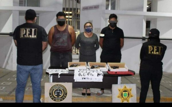 Los detenidos son Adrián de Jesús J. G. alias “Picaso”, de 26 años de edad, originario de Campeche y avecindado en Yucatán; Ismael P. C., alias “Rayo”, de 24 años, natural de Jalisco y radicado en Campeche, y Alondra Isabel G. A., alias “Alo”, de 37 años, originaria y vecina de Yucatán.